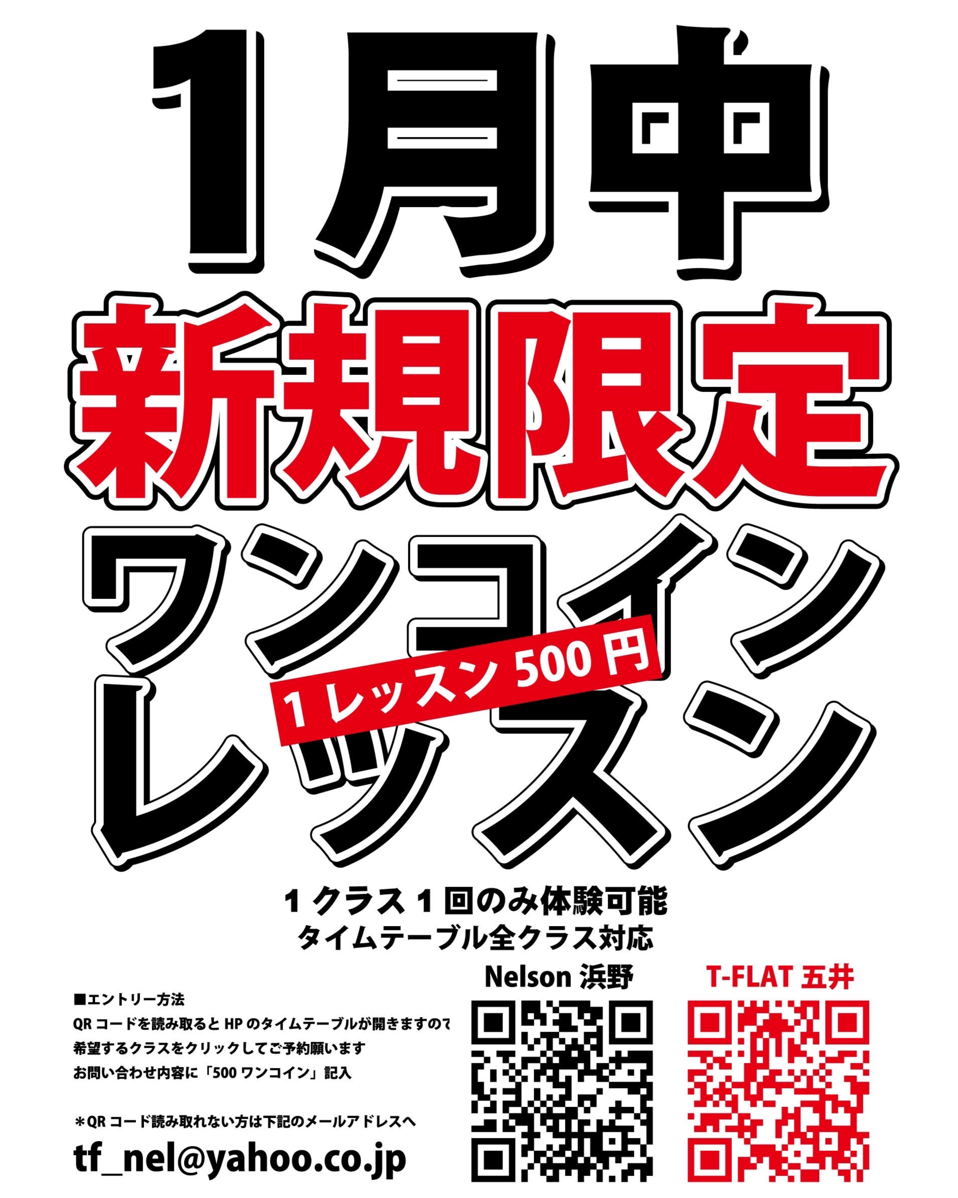 1月2月中 ワンコイン体験レッスンやってます!!