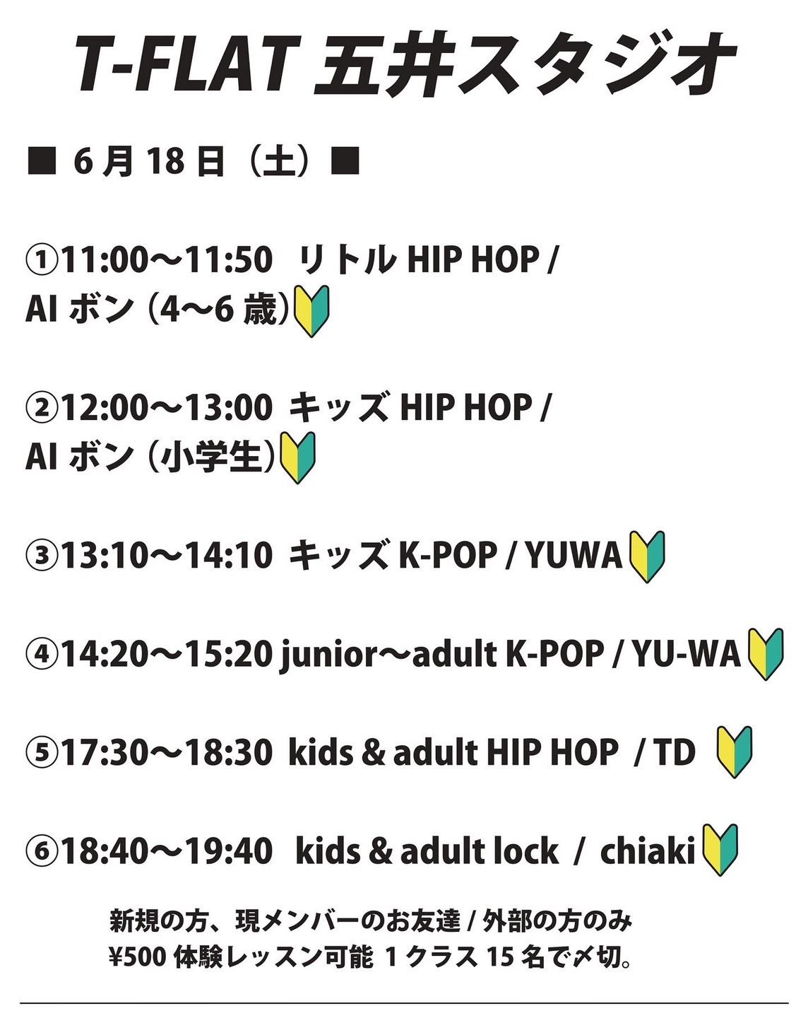 6/18 新規限定ワンコインレッスン(T-FLAT五井店)